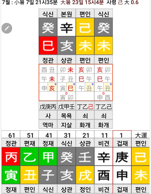 미월의 편인이라 편인이 강해 엄마의 영향력이 크고